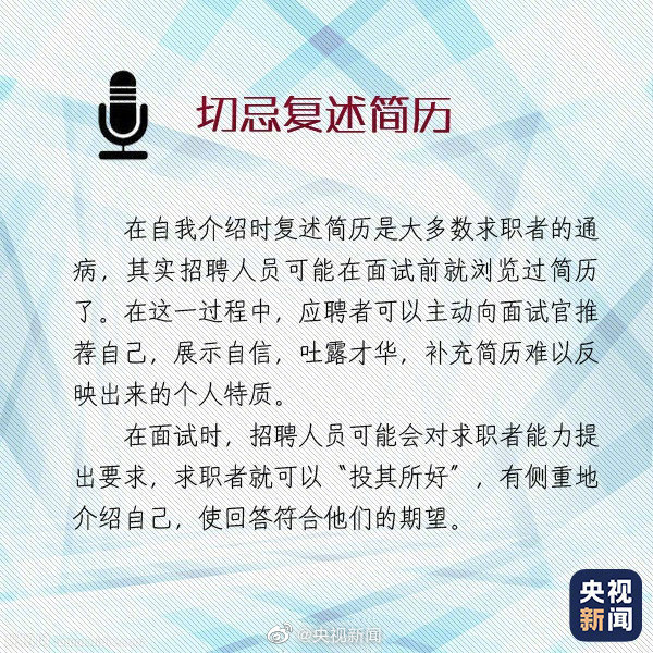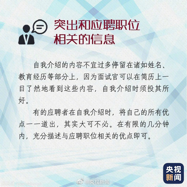 求職面試時的自我介紹有“四大注意”: